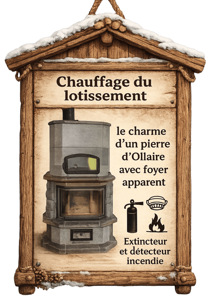 En plus, un bar et une table basse complètent l’ambiance. Donc, idéale pour partager un moment après une journée en montagne, avec le charme d’un pierre d’Ollaire en toile de fond.